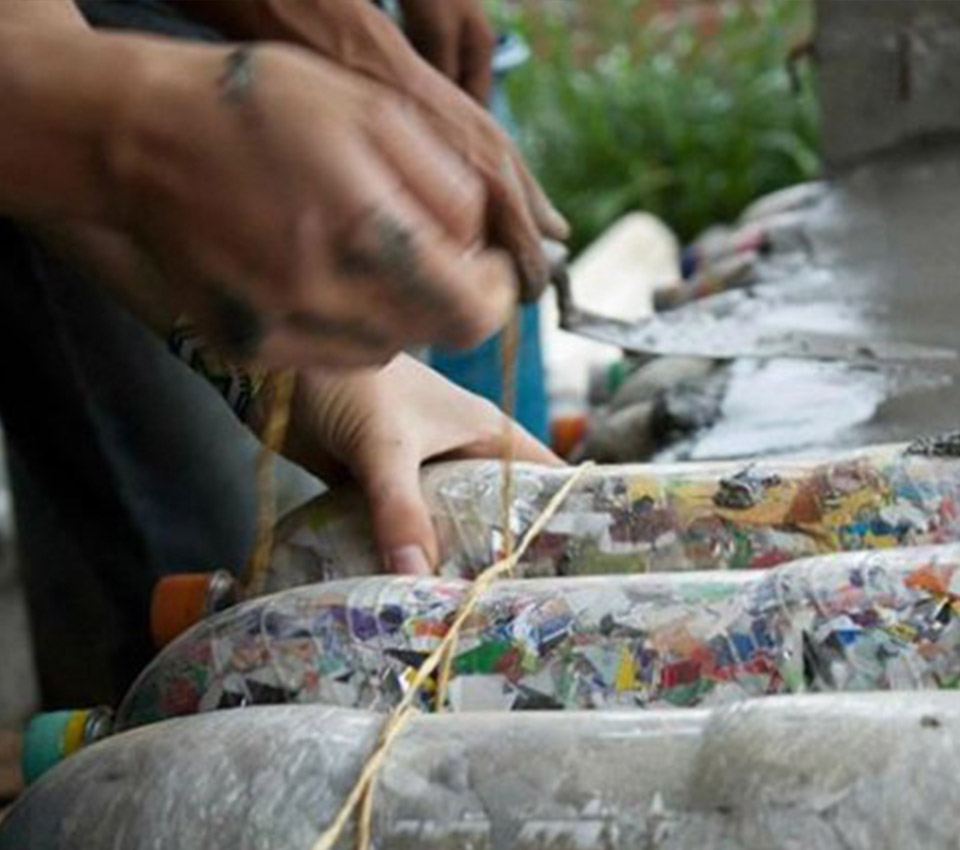 How can we stop this mess? Well, we have come up with a temporary solution of containment in plastic bottles that can be filled so tightly and compactly with months of trash that they become perfect building blocks for garden walls and construction projects. Each person can be responsible for managing their own trash until we find a good way to convert it… possibly back into energy.